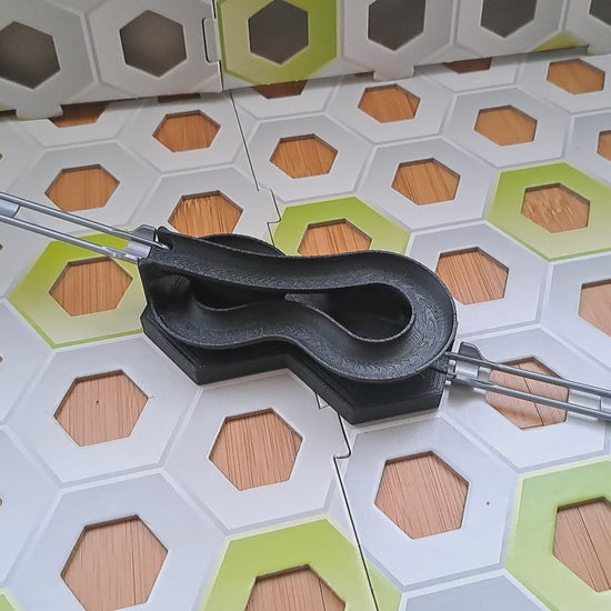 Die Doppelt-Acht ist ein handgefertigtes 3D-gedrucktes Zubehör für GraviTrax-Kugelbahnen. Es ermöglicht neue Streckenführungen, Tricks und spannende Bahnerweiterungen.