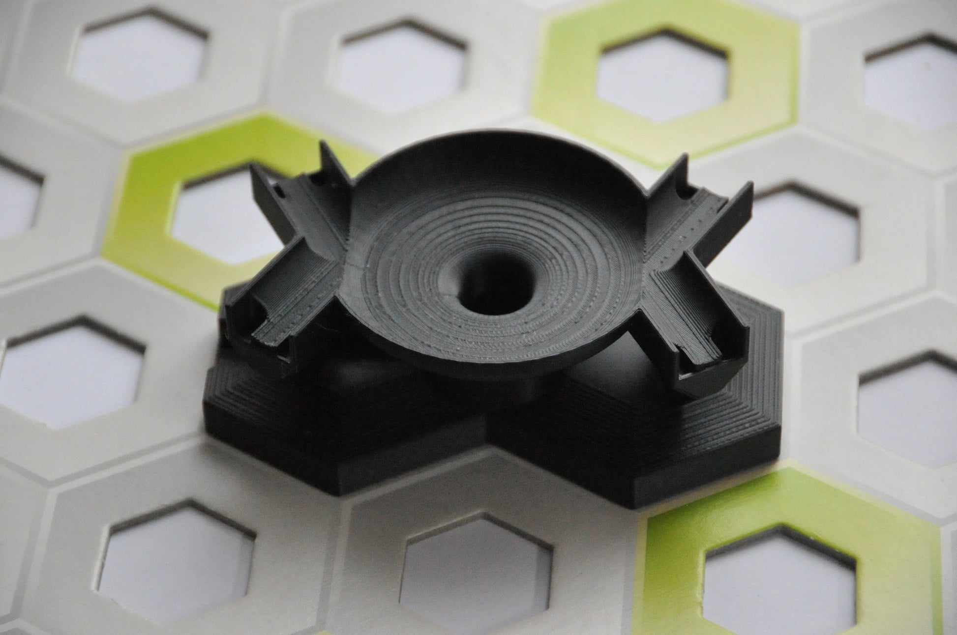 Der Trichter ist ein handgefertigtes 3D-gedrucktes Zubehör für GraviTrax-Kugelbahnen. Es ermöglicht neue Streckenführungen, Tricks und spannende Bahnerweiterungen.